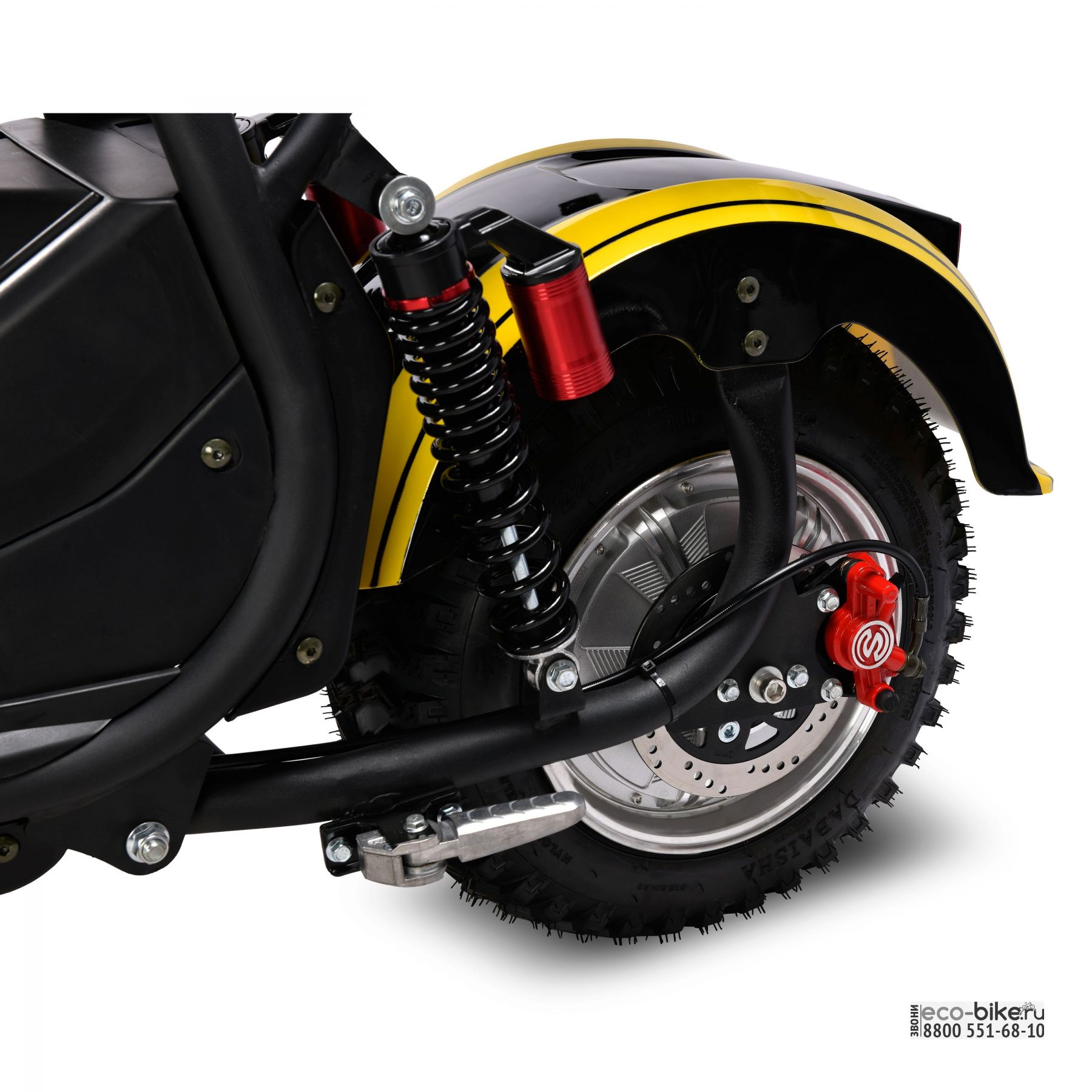 • шоссейная резина на 10-дюймовых колесах с низким профилем позволяет круглогодично использовать скутер и без проблем передвигаться по бездорожью и пересеченной местности;